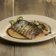Fried Muksun Fillet with Warm Vegetable Salad and Ostrich Fern