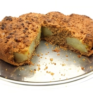 In a bowl, mix the eggs, sugar, flour, milk, and cream. In a skillet, melt the butter and add the pears. Sauté for 1-2 minutes.