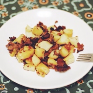Add the remaining butter, potatoes, and fry over medium heat for about 30 minutes until cooked.