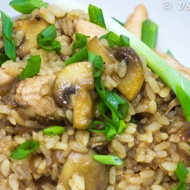 Finally, just stir in the rice, warm it on the heat, and serve it on the table, garnished with fresh green onion.