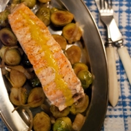 Fried Salmon Fillets and Brussels Sprouts