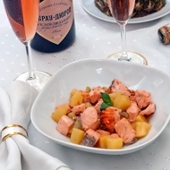 Sparkling rosé brut pairs perfectly with salmon dishes.