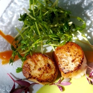 Fried scallops in miso and maple syrup sauce