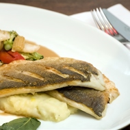 Dredge the fish in flour and fry in hot oil two pieces at a time until golden brown. Transfer the cooked fish to a warmed plate and keep warm while the remaining portions are cooked.