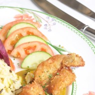 Drain the excess juice. Place the breadcrumbs in one plate and beat the egg in another. Heat the oil in a deep skillet.