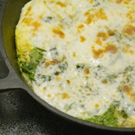 Heat the oil in a non-stick skillet. Sauté the mixture for 4–5 minutes, then place it under a preheated grill and keep until golden brown.