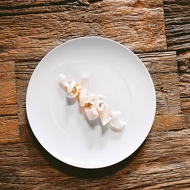 Shape the halibut fillets into sticks, freeze them, then slice very thinly using a slicer. Store in the freezer until ready to serve.