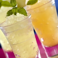 Using a fork, break the frozen lemonade into pieces and transfer to a large dish. Crush into fine crumbs. Divide among glasses, garnish with lemon slices, and serve immediately.