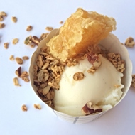 Serve the frozen yogurt with granola, nuts, and honeycomb.