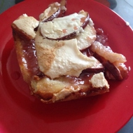 Any jam will do. The fruits can also vary widely. I baked it with apples and bananas.