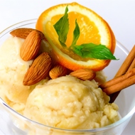 Garnish the finished ice cream with mint, nuts (especially almonds), and fruits.