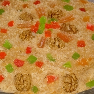 Place half of the fruit leather on a suitable plate. Spread half of the cream on top. Add the remaining fruit leather and spread the remaining cream.