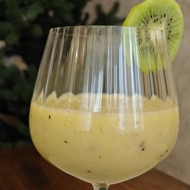 Before serving, garnish with a slice of kiwi.