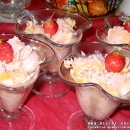 Layer the strawberry-yogurt mixture in a large container, then add the peach puree with ginger. Gently mix, but not to homogeneity, creating a marbled effect.