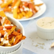 Chop the garlic and blend it with the yolks, lemon juice, and salt.