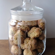 Roll out sausages about 1.5 cm thick and 5 cm long, and roll them in breadcrumbs mixed with ground garlic and a pinch of salt. For variety, some cookies can be rolled in poppy seeds. Arrange them on a baking sheet lined with parchment paper, leaving some space between them. I get about 60 pieces (6 rows of 10 pieces).