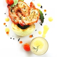 Place the shrimp on the grill, shell side down, and brush with the butter sauce. Grill for 3–4 minutes until cooked through. Transfer to a plate.