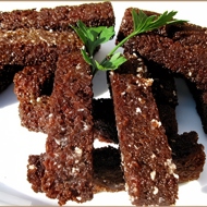 Trim off the crusts from the Borodinsky bread. Cut the bread into sticks.