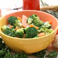 Boil the carrots for about 15 minutes, add the broccoli and green beans 4 minutes before they are done. Drain the vegetables and place them on a plate along with the beets.