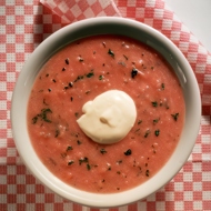 Pour the soup into serving bowls and garnish with sliced avocado. Top with finely chopped cilantro and add a small dollop of sour cream.