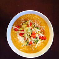 Before serving, dice the remaining cucumber, tomatoes, and grated zucchini into small cubes and place on top of each plate.