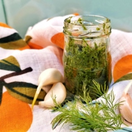 Place the herbs in a deep bowl and drizzle with olive oil.