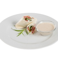 Slice the cucumbers into thin strips and the tomatoes into thin half-moons. Spread a thin layer of the cheese filling on the suluguni, then layer the tomatoes, cucumbers, and tarragon leaves on top. Roll it into a tube and cut it in half diagonally. Serve with a walnut sauce.