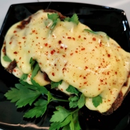 Let it cool slightly, season with chili, and serve.