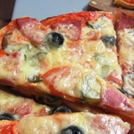 Mix the cheese and diced salami, spread over the dough; top with slices of tomato and season with spices. Drizzle the surface with vegetable oil and let the dough rise a bit more.