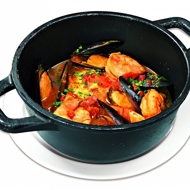 Season the shrimp, scallops, and tilapia fillet with salt and pepper, then add them to the mussels. Sauté on both sides for 1–2 minutes.