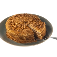 Bake the layers in a preheated oven at 392°F for 7–10 minutes. While they are still warm, trim the layers into even circles. Save the trimmings. Let the layers cool completely.