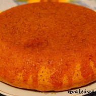 Pour the prepared soak over the hot cake directly in the pan. Leave to cool and soak. When the cake is completely cool (not before an hour), remove it from the pan and peel off the paper.