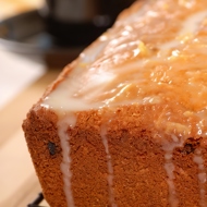 Drizzle the cooled cake with glaze so that it flows nicely down the sides and sprinkle with orange zest.