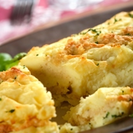 Carefully remove the mold from the pot and let it sit for 5 minutes. Invert onto a plate, cut into pieces, and serve drizzled with custard.
