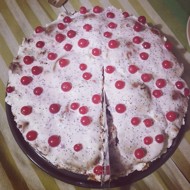 Assemble the cake in a mold with high sides. Dip the gingerbread cookies in the sour cream filling and tightly arrange them as the first layer, filling the gaps with gingerbread crumbs. For the next layer, add the fruits and berries + walnuts (you can mix them with a tablespoon of sour cream for extra juiciness). Repeat with another layer of gingerbread cookies, dipping them in sour cream + filling the gaps with crumbs. Then add another layer of the fruit and nut filling (mixed with a tablespoon of sour cream). Top with a final layer of gingerbread cookies, also dipped in sour cream + crumbs in the gaps. To decorate the topping, you can add a bit of poppy seeds to the remaining sour cream filling, pour it over the cake, and garnish with the remaining berries.