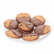 Melt the chocolate in a hot water bath, then slightly cool it and dip the ends of the sticks into it one by one. Let cool.