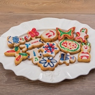Brush the cookies with the glaze, let them dry, and decorate the cookies using coloring pencils; you can make a hole for a ribbon and hang the cookies on the tree.
