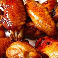 Wash the chicken wings, pat them dry, cut them at the joints, discarding the last joint. Fry in the wok with vegetable oil until golden brown.