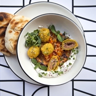 To prepare the batter, mix milk, starch, flour, 20 ml of sriracha, apple cider vinegar, and salt. Dip the olives in this batter and deep-fry them.