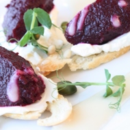 Goat Cheese with Roasted Beetroot and Pear 'Butter'