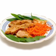 Thoroughly dry the fish fillet and cut it into thin diagonal strips.