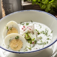 The perfect okroshka, where matsoni is used instead of kefir. Recipe from Chef John Smith of a popular American restaurant.