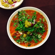 When serving, place sliced sweet red onion mixed with halved pitted green olives in each bowl and sprinkle with finely chopped parsley or cilantro.