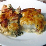 Spread the mixture over the pieces of fish. Place on a greased baking tray. Bake in a preheated oven at 356°F for 20 minutes.