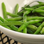 For the green beans, remove the strings, cut them lengthwise or into diamond shapes, boil them just like the pea pods, and toss with butter, salt, and pepper.