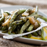 Add the green beans to the shallots and cook, stirring, until the beans are heated through, about 6 minutes. Season with salt and pepper and transfer to a bowl. Serve.
