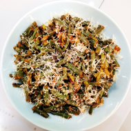 Green beans with cheese, onion, and garlic