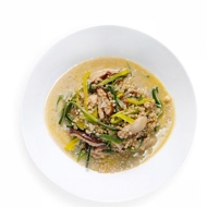 In a mixture of butter and olive oil over medium heat, sauté shallots and garlic, then add buckwheat, stir, pour in boiling water, and simmer covered for ten minutes. After that, add leeks and mushrooms and simmer for another ten minutes. Finally, season with salt and pepper, stir in cream cheese, and serve.