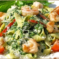 Green Fettuccine with Shrimp and Spinach in Cream Sauce