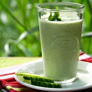 Combine all the green mixture with the kefir, add salt and pepper, and blend in a blender.
